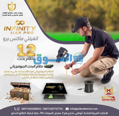 متاح الأن توصيل إلى جميع الدول جهاز سهل الإستخدام ويدعم اللغة العربية الشركة المصنعة : ميغا ديتكشن يدعم اللغة العربية وسهل الإستخدام بلد المنشأ : ألمانيا عمق البحث : 50 متر نطاق مسح أوسع يصل إلى 3000 متر ضمان وكفالة 5 سنوات شحن سريع إلى جميع الدول اول جهاز في العالم ب 12 نظام بحث للكشف عن المعادن Infinity Max Pro 12 نظام بحث تشمل جميع تقنيات الكشف عن المعادن بآخر التطورات و التقنيات في مجال التنقيب وتوفر شركة جولدن ديتكتور دورات تدريبية مجانية يحصل عليها جميع عملاءنا الكرام لإستخدام الأجهزة بالشكل الصحيح للبحث والتنقيب عن الذهب والمعادن لزيارة مقر شركتنا في أبوظبي : الإمارات العربية المتحدة, أبوظبي, شارع رقم 9, معرض المبيعات 704, بناية شليلة, الطابق السابع لطلب الدعم أو للمزيد من الإستفسار عن الأجهزة والشحن : 00971507737755 971562775552 للتواصل عبر الواتس اب مباشرة من خلال النقر على الروابط التالية : https://wa.me/971507737755 لزيارة الموقع الخاص بالشركة ومعرفة كافة التفاصيل حول الجهاز : https://www.goldendetector.com/product/infinity-max-pro-metal-detector/ لمشاهدة فيديو تدريبي حول الجهاز : https://www.youtube.com/watch?v=Si6vBBHJFq4