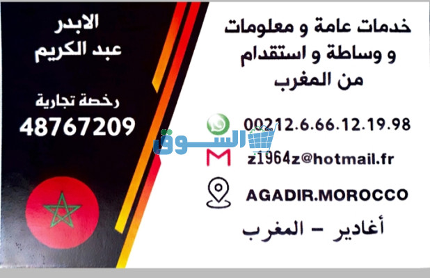 السلام خدمات عامة ووساطة واستقدام بين المغرب والسعودية مرحبا بالتعامل والتعاون انا بمكة 00966562010279