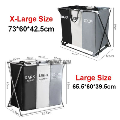 ✅سلة سلة قابلة للطي من قماش الغسيل 135 لترًا قابلة للطي من 3 أقسام بإطار من الألومنيوم 26 × 24 بوصة حقيبة ملابس متسخة للحمام وغرفة النوم وسلة تخزين منزلية (3 بطانة) (أسود + رمادي + قهوة)